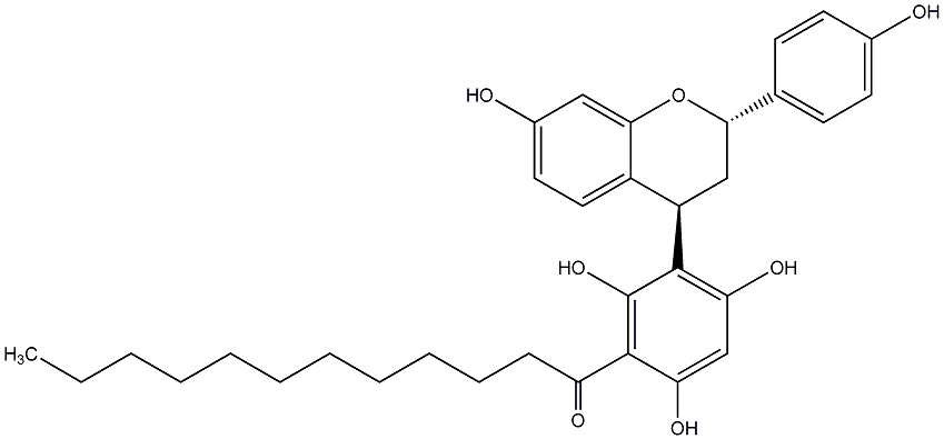 84.34 | C00013273 | (+)-Myristinin A Myristinin A trans-(+)-1-[3-[3,4-Dihydro-7-hydroxy-2-(4-hydroxyphenyl)-2H-1-benzopyran-4-yl]-2,4,6-trihydroxyphenyl]-1-dodecanone |