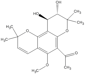 86.54 | C00046955 | trans-(+)-1-(9,10-dihydro-9,10-dihydroxy-5-methoxy-2,2,8,8-tetramethyl-2H,8H-benzo[1,2-b:3,4-b']dipyran-6-yl)ethanone | ![]() |