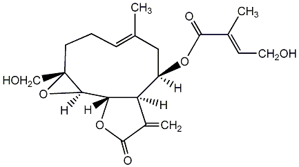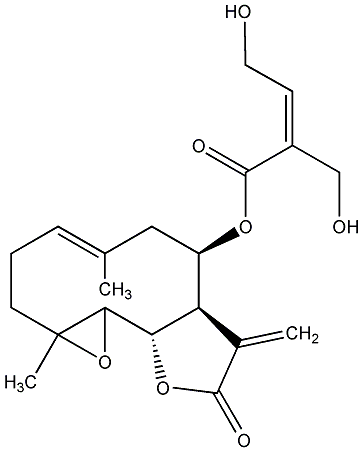 92.86 | C00011988 | [3aS-[3aalpha,4beta,5beta,6alpha(S*),7alpha(Z),7abeta]]-5-(1-Formylethenyl)octahydro-4-hydroxy-6-methyl-3-methylene-6-oxiranyl-2-oxo-7-benzofuranyl ester 2-methyl-2-butenoic acid | ![]() |