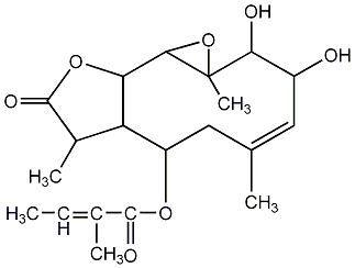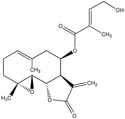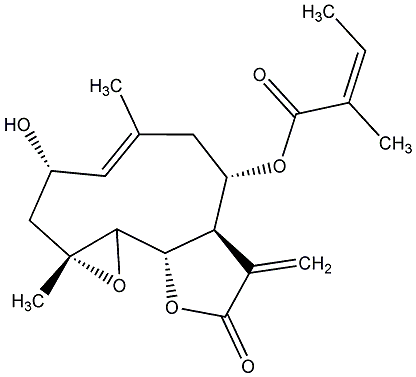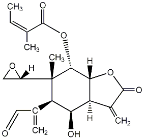 94.74 | C00011990 | [3aS-[3aalpha,4beta(Z),5beta,6alpha(S*),7alpha,7abeta]]-5-(1-Formylethenyl)octahydro-7-hydroxy-6-methyl-3-methylene-6-oxiranyl-2-oxo-4-benzofuranyl ester 2-methyl-2-butenoic acid | ![]() |