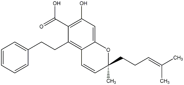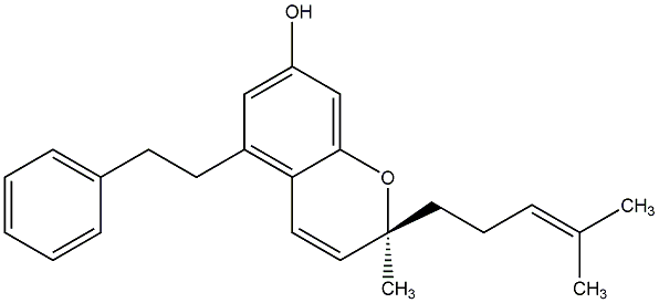 86.67 | C00015196 | 2(S)-6-Carboxy-7-hydroxy-2-methyl-2-(4-methyl-3-pentenyl)-5-(2-phenylethyl)chromene | ![]() |