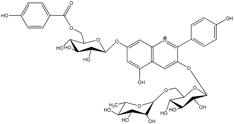 84.62 | C00014847 | Pelargonidin 3-rutinoside-7-(6-(p-hydroxybenzoyl)glucoside) | ![]() |