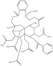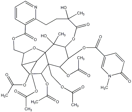 97.67 | C00013157 | Horridine [8R-(8R*,9R*,10R*,11S*,12S*,13R*,14R*,15S*,18S*,19S*,20S*,21S*,22R*)]-10,13,14,22-Tetrakis(acetyloxy)-12-[(acetyloxy)methyl]-21-(benzoyloxy)-7,8,9,10,12,13,14,15,18,19-decahydro-20-hydroxy-8,18,19,20-tetramethyl-8,11-epoxy-9,12-ethano-11,15-methano-11H-[1,8]dioxacycloheptadecino[4,3-b]pyridine-5,17-dione |