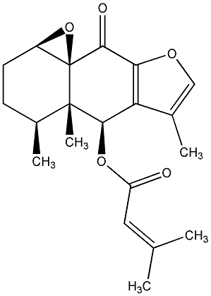 86.79 | C00017432 | [1aR-(1aalpha,4beta,4abeta,5beta,9aS*)]-1a,2,4,4a,5,9-Hexahydro-4,4a,6-trimethyl-9-oxo-3H-oxireno[8,8a]naphtho[2,3-b]furan-5-yl ester 3-methyl-2-butenoic acid | ![]() |