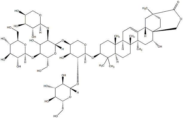 95.00 | C00019000 | (3beta,4alpha,22beta)-22-[[2-O-(6-Deoxy-alpha-L-mannopyranosyl)-alpha-L-arabinopyranosyl]oxy]-23-hydroxyolean-12-en-3-yl O-6-deoxy-alpha-L-mannopyranosyl-(1->2)-O-beta-D-galactopyranosyl-(1->2)-beta-D-glucopyranosiduronic acid | ![]() |