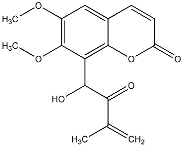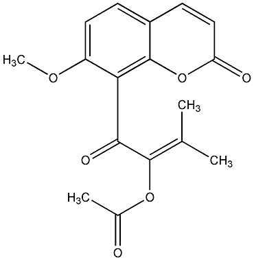 89.36 | C00019971 | 7-Methoxy-8-(2-acetoxy-3-methyl-1-oxobut-2-enyl) coumarin | ![]() |