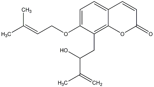 85.11 | C00019960 | (+)-7-(3-Methylbut-2-enyloxy)-8-(2-hydroxy-3-methylbut-3-enyl)coumarin | ![]() |