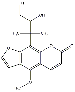 91.67 | C00036599 | 5-Methoxy-8-(1,1-dimethyl-2,3-dihydroxypropyl)-psoralen (+)-5-Methoxy-8-(1,1-dimethyl-2,3-dihydroxypropyl)-psoralen |