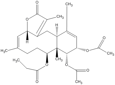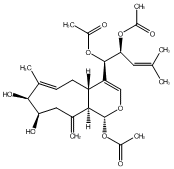83.33 | C00012167 | [1aR-(1aR*,5R*,7R*,10aR*,10bR*)]-2-(Hydroxymethyl)-, 5-(acetyloxy)-8-[(acetyloxy)methyl]-1a,2,3,4,5,6,7,9,10a,10b-decahydro-1a,5-dimethyl-9-oxooxireno[9,10]cyclodeca[1,2-b]furan-7-yl ester 2-propenoic acid | ![]() |