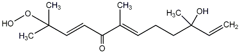 92.31 | C00011464 | Arteincultone [2S-[2alpha(2R*,4E),5alpha]]-2-[(2S,5R)-5-Ethenyltetrahydro-5-methyl-2-furanyl]-6-hydroperoxy-6-methyl-4-hepten-3-one |