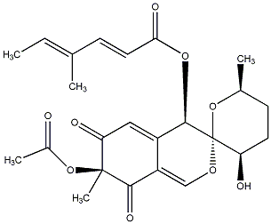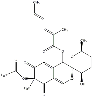 81.25 | C00012131 | [4R-(4R*,5S*,6S*,7S*,10R*,11E)]- 3-[(Acetyloxy)methyl]-5,6,7,8,9,10-hexahydro-6,7-dihydroxy-5,6,10-trimethyl-4-(1-oxopropoxy)-7,10-epoxycyclodeca[b]furan-2(4H)-one | ![]() |