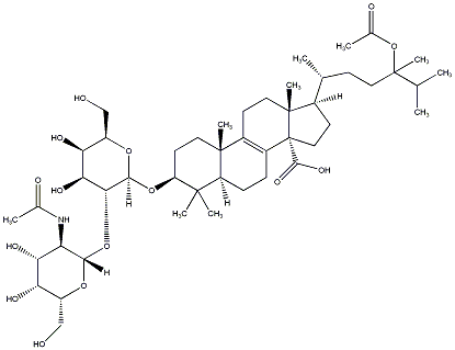 87.86 | C00034425 | 3-O-[beta-D-xylopyranosyl-(1->2)-alpha-L-arabinopyranosyl-(1->6)-2-acetamido-2-deoxy-beta-D-glucopyranosyl] acacic acid lactone | ![]() |