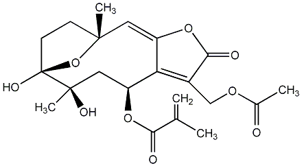 78.79 | C00012953 | [3aR-[3aalpha,4alpha(E),6beta,8alpha,8aalpha,9aalpha]]-6,8-bis(Acetyloxy)-2,3,3a,4,6,7,8,8a,9,9a-decahydro-5,8a-dimethyl-3-methylene-2-oxonaphtho[2,3-b]furan-4-yl ester 2-methyl-2-butenoic acid | ![]() |