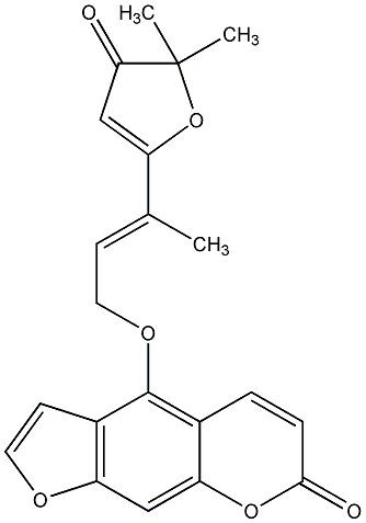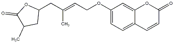 86.54 | C00019833 | 5-[[3-(4,5-Dihydro-5,5-dimethyl-4-oxo-2-furanyl)-2-butenyl]oxy]-7H-furo[3,2-g][1]benzopyran-7-one | ![]() |