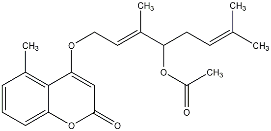 87.72 | C00019906 | 4-[4-Hydroxygeranyloxy]-5-methylcoumarin acetate | ![]() |