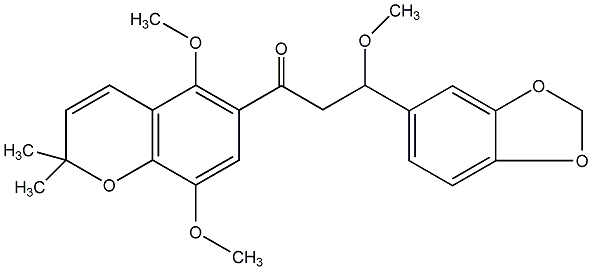84.62 | C00014624 | Ponganone VIII 3-(1,3-Benzodioxol-5-yl)-1-(5,8-dimethoxy-2,2-dimethyl-2H-1-benzopyran-6-yl)-3-methoxy-1-propanone |