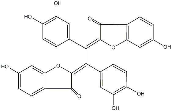84.71 | C00014672 | Disulfuretin (2Z,2'Z)-2,2'-[1,2-Bis(3,4-dihydroxyphenyl)-1,2-ethanediylidene]bis[6-hydroxy-3(2H)-benzofuranone |