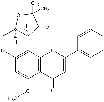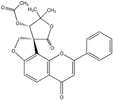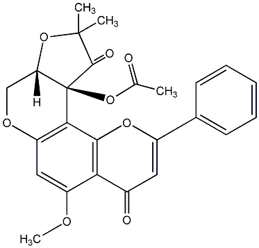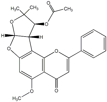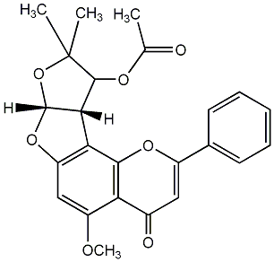 100.00 | C00004097 | Enantiomultijugin (7aR,10S,10aS)-rel-(-)-10-(Acetyloxy)-7a,9,10,10a-tetrahydro-5-methoxy-9,9-dimethyl-2-phenyl-4H-furo[3',2':4,5]furo[2,3-h]-1-benzopyran-4-one |
