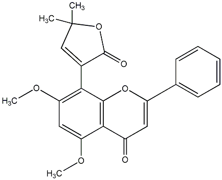 87.88 | C00013474 | Hookerianin 8-(2,5-Dihydro-5,5-dimethyl-2-oxo-3-furanyl)-5,7-dimethoxy-2-phenyl-4H-1-benzopyran-4-one |