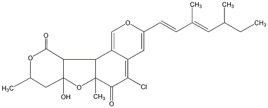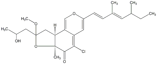 84.48 | C00015345 | Antibiotic RP 1551-4 5-Chloro-3-(3,5-dimethyl-1,3-heptadienyl)-9,9a-dihydro-9-(3-hydroxy-1-oxobutyl)-6a-methyl-6H-furo[2,3-h]-2-benzopyran-6,8(6aH)-dione |