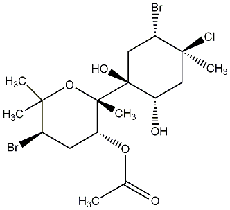 | C00011656 | [1alpha,1(2R*,3S*,5S*),2beta,4alpha,5beta]-(+)-1-[3-(Acetyloxy)-5-bromotetrahydro-2,6,6-trimethyl-2H-pyran-2-yl]5-bromo-4-chloro-4-methyl-1,2-cyclohexanediol | ![]() |