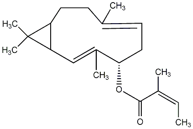 87.23 | C00012430 | [1R-[1R*,2E,4S*(Z),6E,10S*]]-3,7,11,11-Tetramethylbicyclo[8.1.0]undeca-2,6-dien-4-yl ester 2-methyl-2-butenoic acid | ![]() |