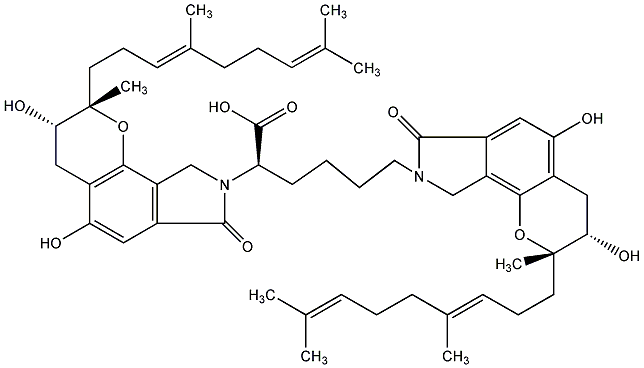 CC(C)=CCC/C(C)=C/CC[C@]1(C)Oc2c(c(O)cc3c2CN(CCCC[C@H](C(=O)O)N2Cc4c(cc(O)c5c4O[C@@](C)(CC/C=C(C)CCC=C(C)C)[C@@H](O)C5)C2=O)C3=O)C[C@@H]1O |
