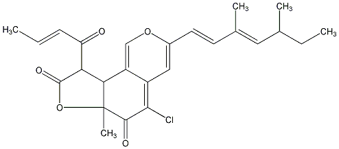 C/C=C/C(=O)C1C(=O)OC2(C)C(=O)C(Cl)=C3C=C(/C=C/C(C)=C/C(C)CC)OC=C3C12 |