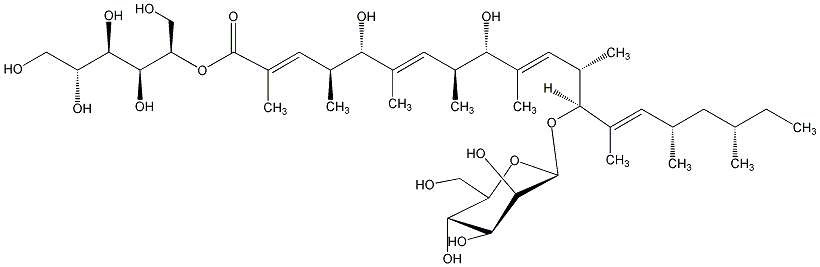 InChI=1S/C41H72O15/c1-11-20(2)12-21(3)13-26(8)39(56-41-38(52)37(51)36(50)31(19-44)55-41)27(9)15-24(6)32(46)22(4)14-23(5)33(47)25(7)16-28(10)40(53)54-30(18-43)35(49)34(48)29(45)17-42/h13-16,20-22,25,27,29-39,41-52H,11-12,17-19H2,1-10H3/b23-14+,24-15+,26-13+,28-16+/t20-,21-,22-,25-,27-,29+,30+,31+,32-,33+,34+,35+,36+,37-,38-,39+,41+/m0/s1 |