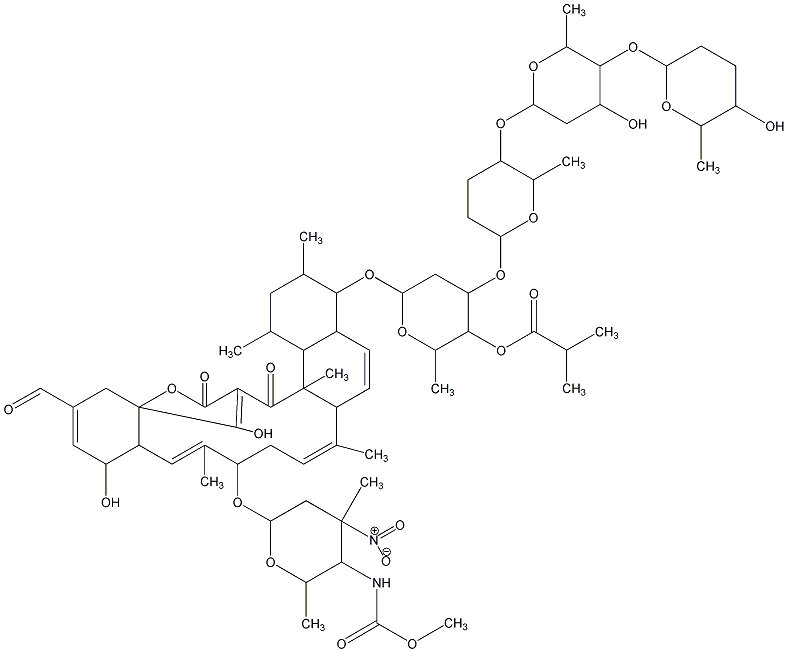 COC(=O)NC1C(C)OC(OC2C/C=C(/C)C3C=CC4C(OC5CC(OC6CCC(OC7CC(O)C(OC8CCC(O)C(C)O8)C(C)O7)C(C)O6)C(OC(=O)C(C)C)C(C)O5)C(C)CC(C)C4C3(C)C(=O)C3=C(O)C4(CC(C=O)=CC(O)C4/C=C/2C)OC3=O)CC1(C)[N+](=O)[O-] |