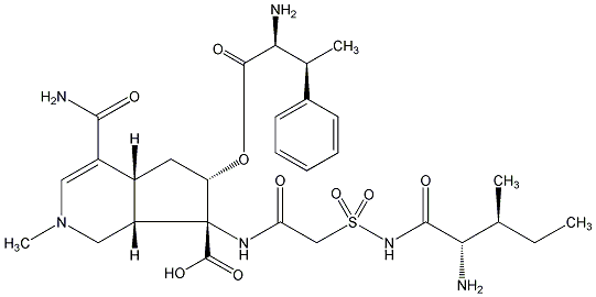 InChI=1S/C29H42N6O9S/c1-5-15(2)23(30)26(38)34-45(42,43)14-22(36)33-29(28(40)41)20-13-35(4)12-19(25(32)37)18(20)11-21(29)44-27(39)24(31)16(3)17-9-7-6-8-10-17/h6-10,12,15-16,18,20-21,23-24H,5,11,13-14,30-31H2,1-4H3,(H2,32,37)(H,33,36)(H,34,38)(H,40,41)/t15-,16-,18-,20+,21-,23-,24-,29+/m0/s1 |