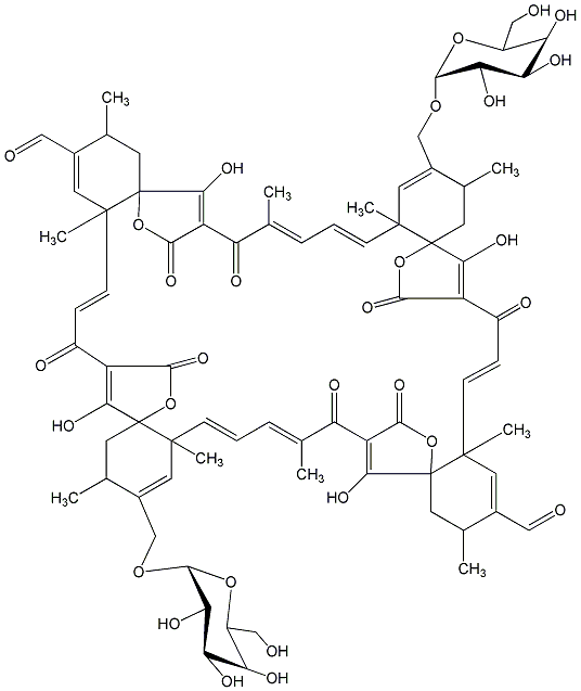 C/C1=CC=CC2(C)C=C(CO[C@@H]3OC(CO)[C@@H](O)[C@@H](O)C3O)C(C)CC23OC(=O)C(=C3O)C(=O)/C=C/C2(C)C=C(C=O)C(C)CC23OC(=O)C(=C3O)C(=O)/C(C)=C/C=C/C2(C)C=C(CO[C@@H]3OC(CO)[C@@H](O)[C@@H](O)C3O)C(C)CC23OC(=O)C(=C3O)C(=O)/C=C/C2(C)C=C(C=O)C(C)CC23OC(=O)C(=C3O)C1=O |