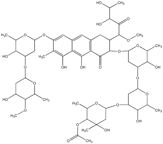 COC(C(=O)C(O)C(C)O)C1Cc2cc3cc(OC4CC(OC5CC(O)C(OC)C(C)O5)C(O)C(C)O4)c(C)c(O)c3c(O)c2C(=O)C1OC1CC(OC2CC(OC3CC(C)(O)C(OC(C)=O)C(C)O3)C(O)C(C)O2)C(O)C(C)O1 |