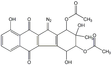 CC(=O)OC1c2c(c3c(=O)c4cccc(O)c4c(=O)c=3c2=[N+]=[N-])C(O)C(OC(C)=O)C1(C)O |