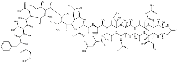 CC[C@@H](C)[C@@H](C(=O)N(C)[C@H](C(=O)N(C)[C@@H](CC(C)C)C(=O)N[C@@H](CC(N)=O)C(=O)N[C@@H]1C(=O)N[C@@H](CC(N)=O)C(=O)N(C)CC(=O)N[C@@H](CC(N)=O)C(=O)N[C@@H](C)C(=O)N[C@H]([C@H](C)CC)C(=O)N[C@H]2CC(=O)N[C@@]2(O)[C@H](C)C(=O)N[C@H](CC(=O)NC(N)=O)C(=O)N[C@H](C)C(=O)N(C)C([C@@H](C)CC)C(=O)O[C@@H]1C)C(C)C)N(C)C(=O)[C@H](CC(N)=O)N(C)C(=O)[C@H](C(C)C)N(C)C(=O)[C@@H](Cc1ccccc1)NC(=O)COC |