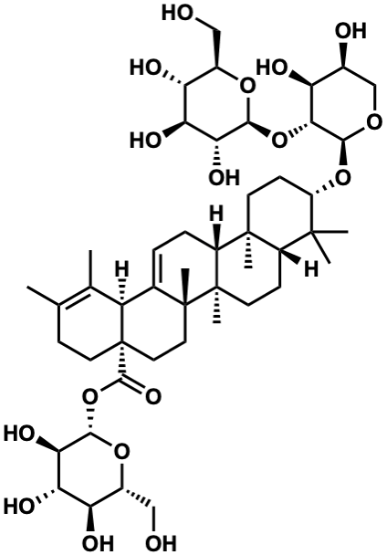 InChI=1S/C47H74O17/c1-21-10-15-47(42(58)64-40-37(57)35(55)33(53)26(19-49)61-40)17-16-45(6)23(30(47)22(21)2)8-9-28-44(5)13-12-29(43(3,4)27(44)11-14-46(28,45)7)62-41-38(31(51)24(50)20-59-41)63-39-36(56)34(54)32(52)25(18-48)60-39/h8,24-41,48-57H,9-20H2,1-7H3/t24-,25+,26+,27-,28+,29-,30-,31-,32+,33+,34-,35-,36+,37+,38+,39-,40-,41-,44-,45+,46+,47-/m0/s1 |