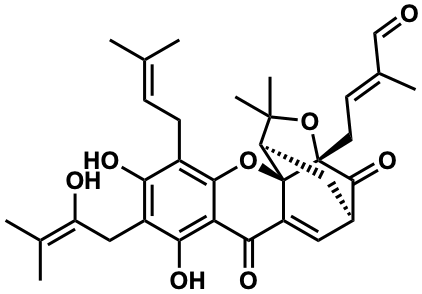 CC(C)=CCc1c(O)c(CC(O)=C(C)C)c(O)c2c1O[C@@]13C(=C[C@H]4C[C@@H]1C(C)(C)O[C@]3(C/C=C(C)C=O)C4=O)C2=O |