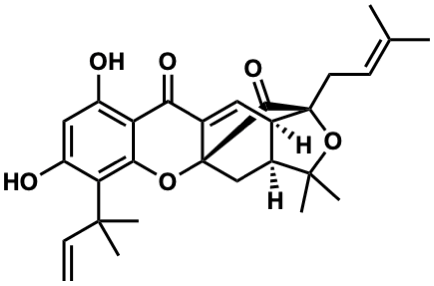 InChI=1S/C28H32O6/c1-8-25(4,5)21-19(30)12-18(29)20-22(31)16-11-15-17-13-28(16,33-23(20)21)24(32)27(15,10-9-14(2)3)34-26(17,6)7/h8-9,11-12,15,17,29-30H,1,10,13H2,2-7H3/t15-,17+,27+,28+/m1/s1 |