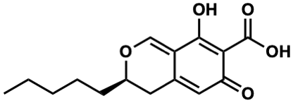 InChI=1S/C15H18O5/c1-2-3-4-5-10-6-9-7-12(16)13(15(18)19)14(17)11(9)8-20-10/h7-8,10,17H,2-6H2,1H3,(H,18,19)/t10-/m1/s1 |