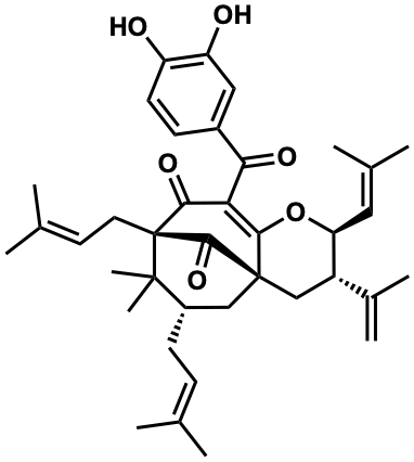 C=C(C)[C@@H]1C[C@]23C[C@H](CC=C(C)C)C(C)(C)[C@](CC=C(C)C)(C(=O)C(C(=O)c4ccc(O)c(O)c4)=C2O[C@H]1C=C(C)C)C3=O |