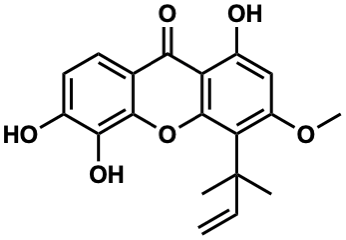 C=CC(C)(C)c1c(OC)cc(O)c2c(=O)c3ccc(O)c(O)c3oc12 |