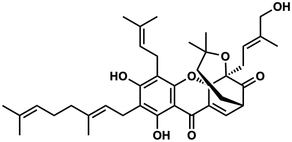 CC(C)=CCC/C(C)=C/Cc1c(O)c(CC=C(C)C)c2c(c1O)C(=O)C1=C[C@@H]3C[C@H]4C(C)(C)O[C@@](C/C=C(C)CO)(C3=O)[C@@]14O2 |