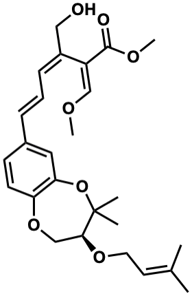 | Organism | Mycena sanguinolenta | | Reference | Backens, S. et al., Annalen, 1988, 405-409 (Hydroxystrobilurin D) |