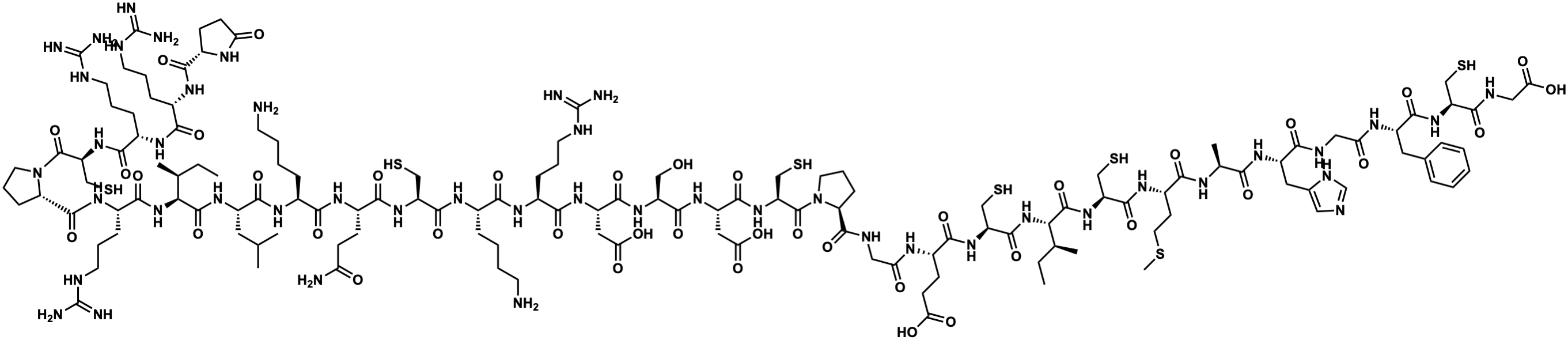 CC[C@H](C)[C@H](NC(=O)[C@H](CS)NC(=O)[C@H](CCC(=O)O)NC(=O)CNC(=O)[C@@H]1CCCN1C(=O)[C@H](CS)NC(=O)[C@H](CC(=O)O)NC(=O)[C@H](CO)NC(=O)[C@H](CC(=O)O)NC(=O)[C@H](CCCNC(=N)N)NC(=O)[C@H](CCCCN)NC(=O)[C@H](CS)NC(=O)[C@H](CCC(N)=O)NC(=O)[C@H](CCCCN)NC(=O)[C@H](CC(C)C)NC(=O)[C@@H](NC(=O)[C@H](CCCNC(=N)N)NC(=O)[C@@H]1CCCN1C(=O)[C@H](CS)NC(=O)[C@H](CCCNC(=N)N)NC(=O)[C@H](CCCNC(=N)N)NC(=O)[C@@H]1CCC(=O)N1)[C@@H](C)CC)C(=O)N[C@@H](CS)C(=O)N[C@@H](CCSC)C(=O)N[C@@H](C)C(=O)N[C@@H](Cc1cnc[nH]1)C(=O)NCC(=O)N[C@@H](Cc1ccccc1)C(=O)N[C@@H](CS)C(=O)NCC(=O)O |
