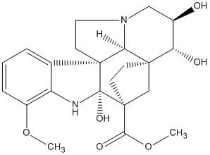 InChI=1S/C22H28N2O6/c1-29-14-5-3-4-12-15(14)23-22(28)20(18(27)30-2)7-6-19(11-20)16(26)13(25)10-24-9-8-21(12,22)17(19)24/h3-5,13,16-17,23,25-26,28H,6-11H2,1-2H3/t13-,16+,17+,19-,20+,21-,22+/m1/s1 |