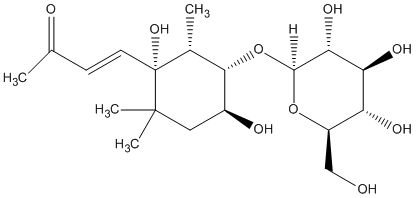 InChI=1S/C19H32O9/c1-9(21)5-6-19(26)10(2)16(11(22)7-18(19,3)4)28-17-15(25)14(24)13(23)12(8-20)27-17/h5-6,10-17,20,22-26H,7-8H2,1-4H3/b6-5+/t10-,11+,12-,13-,14+,15-,16+,17+,19-/m1/s1 |