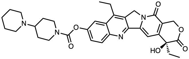 CCc1c2c(nc3ccc(OC(=O)N4CCC(N5CCCCC5)CC4)cc13)-c1cc3c(c(=O)n1C2)COC(=O)[C@]3(O)CC |
