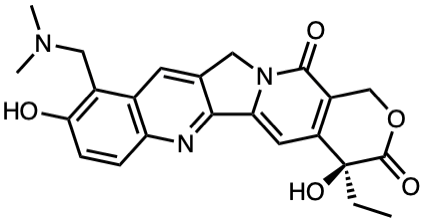 CC[C@@]1(O)C(=O)OCc2c1cc1n(c2=O)Cc2cc3c(CN(C)C)c(O)ccc3nc2-1 |