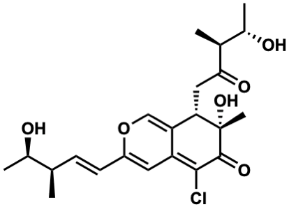 C[C@H](O)[C@H](C)C(=O)C[C@H]1C2=COC(/C=C/[C@@H](C)[C@@H](C)O)=CC2=C(Cl)C(=O)[C@@]1(C)O |