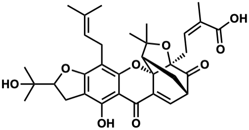 CC(C)=CCc1c2c(c(O)c3c1O[C@]14C(=C[C@@H]5C[C@H]1C(C)(C)O[C@@]4(C/C=C(/C)C(=O)O)C5=O)C3=O)CC(C(C)(C)O)O2 |